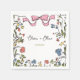 Guardanapos de casamento excêntricos e caprichosos com um lindo arco macio rosa desenhado à mão em um estilo divertido e alegre com um desenho de moldura de flor doodle colorida, acompanhado por uma fonte casual e manuscrita que captura perfeitamente a emoção e a alegria da ocasião.