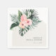 Celebre a noiva com esses guardanapos modernos e elegantes para chá de panela de noiva, apresentando um buquê floral tropical rosa e verde em um arco de cor de pedra clara.
