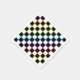 Arte abstrato digital de quadrados brancos e arco-íris em uma formação marcada.