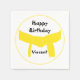 Personalize o Papel de Aniversário do Cinturão Amarelo de Artes Marciais Napkins com o nome do seu atleta marcial, menino ou menina do dia a dia. Esses bonitos guardanapos descartáveis de dia de artes marciais personalizados apresentam um design de cinto amarelado com fundo branco.