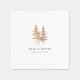 Guardanapos de casamento personalizados de terracota com pinheiros em montanha com um motivo minimalista de pinheiro em aquarela em tons quentes de terracota.