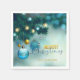 Personalize estes elegantes guardanapos de Natal em cores azuis e douradas com luzes, galhos de pinos e borbulhas. Personalize adicionando sobrenome, mensagem ou exclusão.