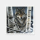 Um lobo solitário passa o inverno espiando entre árvores polares brancas à noite.