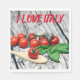 A fotografia fantástica dos ingredientes típicos da comida italiana: tomate e manjericão na colher de madeira. Eu amo a Itália!