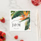 Apresentando o Birds of Paradise Bliss Napkin, com um captivante pano de fundo verde-escuro adornado com um quadro delicioso mostrando a beleza exótica dos pássaros do paraíso da coleção Birds of Paradise Bliss. Um belo pássaro do paraíso agarra o canto superior direito, adicionando um toque de encanto tropical. No canto inferior esquerdo, personalize o guardanapo com as iniciais dos casais. Acima das iniciais, inclua o local da cerimônia e abaixo, indique a data do casamento. Essa design refletida combina funcionalidade com estética, criando um acessório visualmente atordoante e íntimo que ressoa com o amor e a vibração da coleção Birds of Paradise Bliss.