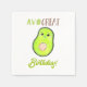Um bonitinho guardanapo de aniversário com uma frase que diz "Avo excelente aniversário" com um abacate desenhado à mão de kawaii. Ilustração de Kristine Lee. Para mais designs e ilustrações, visite www.kristineleedesigns.com