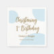 Estes guardanapos elegantes apresentam uma bela bolinhas azul e design de texto de matiz dourada, perfeito para celebrar um batizado e o primeiro aniversário em estilo. Personalize-os com o nome e a data do evento da criança para adicionar um toque especial à sua celebração. Ideal para uma festa memorável e na moda. Tipografia moderna, chic e elegante.