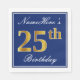 Este simples e elegante design de guardanapo de papel apresenta uma mensagem como "NameHere's 25 Birthday" (com o "25" a ter uma coloração falsa em ouro) dentro de uma área quadrada de cor azul com um contorno de fronteira simples. O nome está em texto semelhante a script de cor branca e pode ser personalizado. Napkins como estes poderia talvez ser usado numa festa de aniversário para alguém que comemora seu vigésimo quinto aniversário. [~Z0000141]
