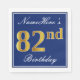 Este simples e elegante design de guardanapo de papel apresenta uma mensagem como "NameHere's 82nd Birthday" (com o "82º" a ter uma coloração falsa em ouro) dentro de uma área quadrada de cor azul com um contorno de fronteira simples. O nome está em texto semelhante a script de cor branca e pode ser personalizado. Napkins como estes poderia talvez ser usado numa festa de aniversário para alguém que comemora seu oitenta e segundo aniversário. [~Z0000141]