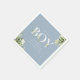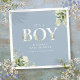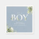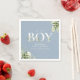 É um guardanapo de chá de bebê é um menino com uma tipografia elegante e folhagem botânica bonita em um fundo azul empoeirado. Criado por Thisisnotme©