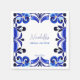 Azulejos azuis Majolica mexicanos Talavera espanhóis franceses Mediterrâneo guardanapos personalizados modelo. Azulejos de cores azuis com fonte manuscrita moderna aquarela guardanapos personalizados louças personalizadas decoração de mesa