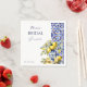 Azulejos azuis de Amalfi Positano Vietri Majólica limões modelo para chá de noiva guardanapos, tema mediterrâneo azulejos azuis brancos e amarelos com maço de cítricos com limões e flores em vaso de cerâmica azul guardanapos personalizados para decoração de mesa