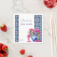 Azulejos Franceses Azuis e Bougainvillea em um vaso de cerâmica azul fonte manuscrita elegante Mediterrâneo Francês tema Mediterrâneo chá de noiva guardanapos impressos modelo personalizado chá de noiva louças decoração de mesa