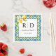 Azulejos azuis e amarelas mediterrânicos e ramificação de limão com flores guardanapo de papel de casamento. Este design de guardanapo de papel de casamento explode com charme mediterrânico, mostrando um padrão de azulejo azul e amarelo vibrante que evoca as costas ensolaradas da Itália. Os filhotes de galhos de limão florescentes, graciosamente colocados no canto superior esquerdo, adicionam um toque de elegância italiana clássica. A design é uma mistura deliciosa de sofisticação e brincadeira, ideal para uma celebração que abraça o calor e a beleza de um verão italiano. Todos os detalhes essenciais são apresentados claramente dentro de um quadro quadrado, garantindo a legibilidade e a apresentação do na moda.