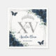 Coordinate your celebration with these lovely napkins, featuring navy baby blue flowers, a silver glitter Mis XV headline and navy blue and silver butterflies. Personalize it with your details easily and quickly, simply press the customize it button to further re-arrange and format the style and placement of the text. (c) The Happy Cat Studio