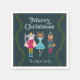 Um guardanapo de Natal bonito e divertido, com ilustração desenhada à mão de um gato, cão e rato como personagens balés de nutcracker. O fundo é verde.