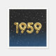 Balões de folha de ouro para o ano de nascimento de 1959 sobre fundo preto e azul gradiente com estrelas noturnas para festa de aniversário.