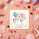 Chá de fraldas encantador do Watercolor Flying Hot Air Balloons chá de fraldas "é uma menina", guardanapo vermelho de texto. Esta design branca apresenta balões coloridos, pintados à mão, de ar quente, que flutuam na nuvem fluffy. O delicado estilo de aquarela com cores pastéis macios define o palco para uma celebração alegre. Com detalhes personalizáveis para você adicionar seu nome de bebê, este tema permite criar uma experiência personalizada e memorável para seus amigos e família.