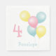 Estes guardanapos coloridos do partido infantil com balões coloridos de festa pastel com espaços reservados para qualquer nome e idade. Dimensões: 6,5" x 6,5" (dobradas), 3 rostos Impressos em cor de cheio na sua escolha de guardanapos brancos ou nódulos