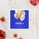 Um fundo azul real com balões ouros. Personalize e adicione um nome e uma idade. Cartas brancas.