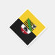 Napau de papel com bandeira variante da Saxónia-Anhalt; design com duas bandas horizontais de amarelo (ouro) e preto e com casaco de braços do Estado no centro