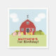 O Barnyard celebra o teu aniversário com o nosso bonito tema do Barnyard. Com um celeiro vermelho, feno, porcos e pintinhos. Tema perfeito para fazenda de aniversário ou festa temerária do animal de celeiro. Este design é ideal para todas as idades. Completamente personalizável. Veja o papel de coordenação e presentes.