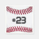 Fecho extremo de uma bola branca de basebol com pontos vermelhos e número. Número editável.