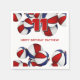 Esses guardanapos de festa de aniversário do tema basquete são totalmente personalizáveis e apresentam clusters de basquete vermelho, branco e azul nas bordas superior e inferior - personalize com seu texto personalizado - por katz_d_zynes