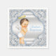 Guardanapos de batizado de menino com adorável bebê menino anjo em um belo fundo azul e prata com redemoinho. Você pode personalizar com o texto de sua escolha.