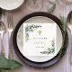 Para um batismo elegante, neutro em gênero. Um fundo branco chic. Decorados com folhas de eucalipto, prigos, verde, folhas de ouro falso, de cor aquosa verde. Personalize e adicione o nome da criança e uma data. Letras pretas e ouros.
