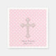 Elegantes guardanapos de batizado cruz rosa com bolinhas cor-de-rosa. Você pode personalizar com a mensagem de texto de sua escolha.