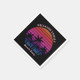 Cool custom beach sunset party paper napkins for a destination wedding or family luau on an island. Cute personalized tropical black decor featuring a pretty pink sky behind beautiful palm trees on the coast.