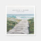 Caminho de barco da Flórida e guardanapos de casamentos de praia de areia branca, personalizados com nomes e data de casamento. Uma bela cena celebrando a beleza natural de uma praia da Flórida.