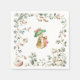 Whimsical Beatrix Potter-inspired napkins featuring an adorable bunny in a charming flower hat with pink accents, nestled in a square frame of green foliage, soft blossoms, trailing vines, and hanging rosy berries/fruit in gentle watercolor style. Perfect for adding storybook elegance to garden parties, nursery themes, woodland showers, or classic Peter Rabbit events. Soft, durable paper in sets, multiple sizes (cocktail to luncheon), premium Zazzle quality that matches your invites, signs, plates, favor tags, and more for a magical, polished baby shower setup.