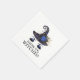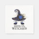 Os guardanapos ideais para a sua festa de Halloween ou despedida de solteira com tema de Halloween. Apresenta uma carinha de bruxa fofa (um chapéu de bruxa azul com luas e estrelas douradas e um buquê azul, preto e dourado sobre um par de sobrancelhas arqueadas e pálpebras maquiadas com glitter azul). Abaixo, o texto preto lê "Beba, bruxas!" em uma fonte adequadamente assustadora.