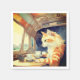 Tea Bebendo de Gato Laranja num trem de safra, pintura de arte surreal para amantes de gatos.