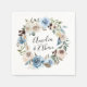 Nossos elegantes guardanapos de papel personalizados apresentam uma coroa floral de antigos rosas de cor branca e azul-indigo com folhas verdes mudas. Personalize os guardanapos adicionando seus nomes para um design que impressionará seus convidados! Projetado para coordenar com a nossa coleção de casamento Blooming Beauty.