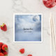Guardanapos de papel com um céu de fantasia mágico com nuvens azuis e uma lua grande e bonita. 2 cisnes brancas voando juntas.