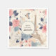 Guardanapos de papel com um adorável padrão temático francês. Flores bonito, torre Eiffel e borboletas. As cores incluem rosa, azul, pêssego e creme.