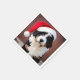 Bela Bernedoodle vestindo um chapéu de Papai Noel.