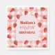 Um design de guardanapo de papel de primeira festa de aniversário, um morango extremamente fofo. Personalize os detalhes e torne-os seus! Convites de aniversário correspondentes decoração, favor e presentes podem ser encontrados nesta coleção de design. Ideal para um tema de festa de aniversário "primeira baga".