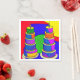 Guardanapos de aniversário coloridos com bolos estilo Pop Art.