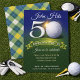 Celebrate a golfer in style with this golf theme design — a fun, sophisticated design guests will love. Featuring a plaid green, blue and gold background, a golf ball, banner and fun party font.