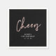 Este guardanapo moderno irá adicionar detalhes de na moda ao seu dia especial. O design apresenta a letra rosa dourada "Cheers" com texto personalizado. Você pode personalizar o guardanapo com seu nome e evento. Convites de festas de aniversários e estacionamentos correspondentes estão disponíveis no meu compro BaraBomDesign.