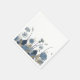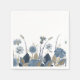 Design floral elegante com flores azuis e beges, com caules altos e folhas em fundo branco limpo, criando um aspecto macio, moderno e sofisticado.