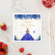 Este elegante e glamouroso e doce guardanapo apresenta uma bela princesa com cabelo loiro e pele de pele justa em um vestido azul real de bola. O texto combina o script manuscrito e as fontes sans serif modernas para um aspecto elegante e sofisticado. Os arranjos florais, borboletas e confete de ouro criam a mistura perfeita de rústicos e quicos. Gráficos por www.etsy.com/uk/shop/SunflowerDayLove