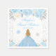 Este elegante e glamouroso guardanapo apresenta uma bela princesa com cabelo loiro e pele de pele clara num vestido de bola azul. O texto combina o script manuscrito e as fontes sans serif modernas para um aspecto elegante e sofisticado. Os arranjos florais, flocos de neve e confete prateado criam a mistura perfeita de rústico e chic. Perfeito para um inverno, temia doce dezesseis festas de aniversário. Gráficos por www.etsy.com/uk/shop/SunflowerDayLove