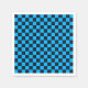 Blue and black checkerboard pattern with evenly spaced squares. The image conveys a sense of order and symmetry, with a vibrant color contrast.