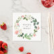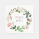 Uma coroa herbácea elegante de flores e folhagem em tons de branco, ouro rosa, cor-de-rosa-pincel e verde, guardanapos de papel personalizados. O estilo da fonte do texto e a cor podem ser personalizados. Projetado para combinar com nossa Coleção Graciosa de Casamentos de Jardim.