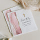 A borda esquerda deste elegante guardanapo apresenta uma aquarela cor-de-rosa pincelada com borda falsa de ouro. Uma cruz falsa de folha de ouro aparece acima do texto personalizável, que combina escrita manual, copperplate e fontes itálicas em cinzas de carvão em um fundo branco. Personalize-o com o nome do convidado de honra e a data.